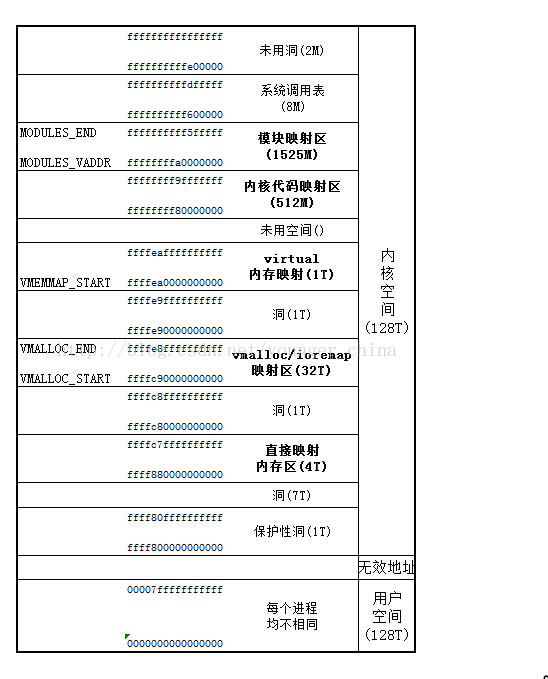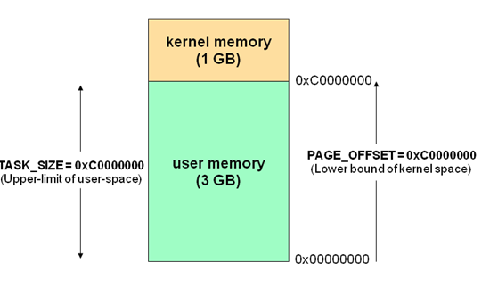 在现代操作系统中,计算机的虚拟内存地址空间通常被分为两块——供用户进程使用的用户空间(user space)与供操作系统内核使用的内核空间(kernel space),对于 Linux 而言,通常位于较高虚拟地址的虚拟内存空间被分配给内核使用,而位于较低虚拟地址的虚拟内存空间责备分配给用户进程使用